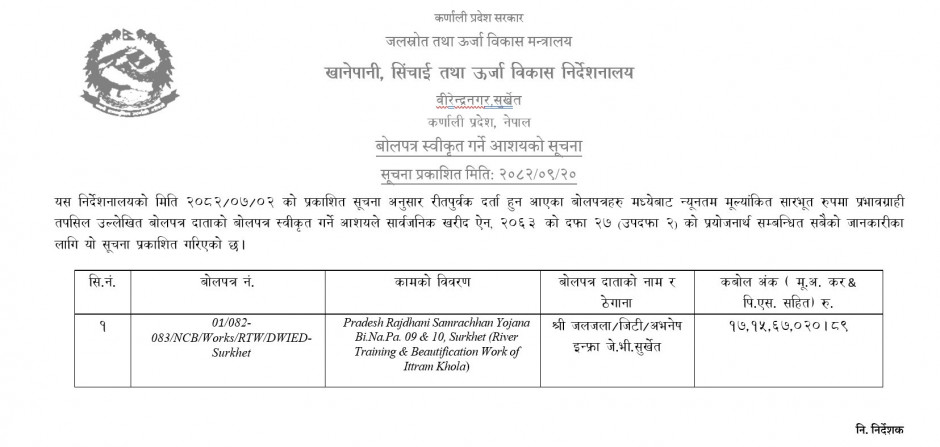 © सर्वाधिकार सुरक्षित खानेपानी, सिंचाई तथा ऊर्जा विकास निर्देशनालय